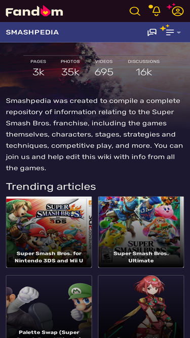 74%smashwikia is a super smash bros. database that anyone can edit. includes characters, moves, stages, and more.