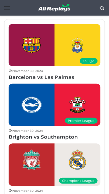 Watch full match replays of top football leagues and tournaments, including the Premier League, Champions League, La Liga, Serie A, Bundesliga, Ligue 1, Europa League, and more!