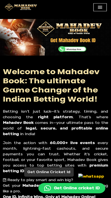 83%Mahadev Book Official — Create your Mahadev Book ID in minutes. Instant signup, fast KYC, 24/7 support, cricket betting & live casino. Join now.
