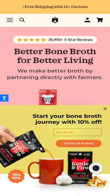 Kettle & Fire's bone broth is made with all organic ingredients and bones from 100% grass-fed cows. Try our 5-star bone broth and start improving your health.