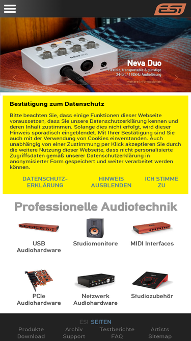 esi - hersteller von professioneller audiohardware mit sitz in deutschland. pcie-, usb- und netzwerk-interfaces sowie studiomonitors und passendes zubehör.
