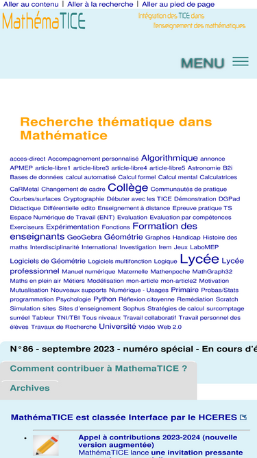 mathématice, première revue en ligne destinée à promouvoir les tice à travers l'enseignement des mathématiques.