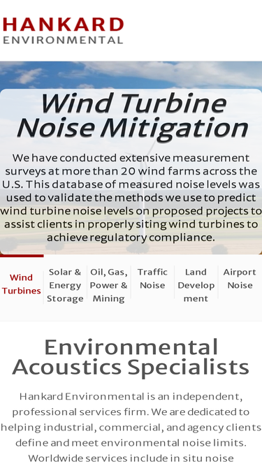 92%hankard environmental is a noise consultant that assesses acoustics for mining, wind power, turbine, compressor station, power plant, rail, oil and gas, traffic, highway, transportation, development, and expert witness. we offer services in united states, worldwide, nationwide, name all states and countries