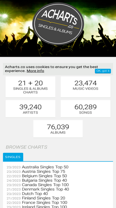 91%view 21 singles and 20 albums national charts, including chart history, indept analytics and official music videos.