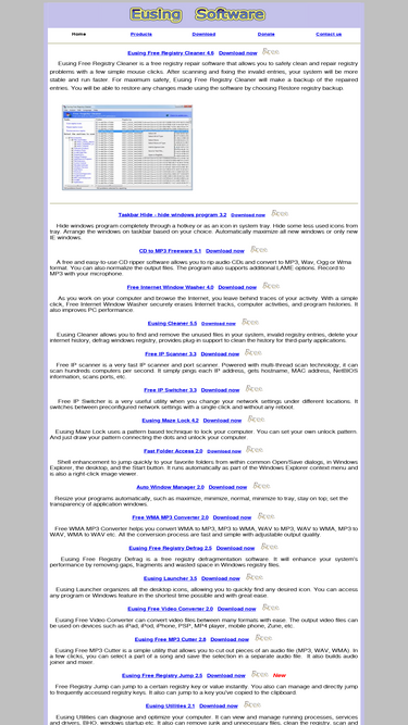 eusing software - hide windows program software,cd ripper freeware,registry cleaner,free window washer software.