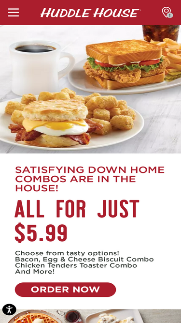 huddle house restaurants are located in the southeast, mid-atlantic, midwest, and southwest. serving breakfast, lunch and dinner. any meal. any time. franchisee opportunities are available.