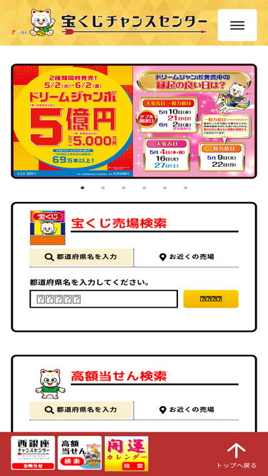 宝くじチャンスセンター公式サイト。高額当せん情報や日本一の宝くじ売場 西銀座チャンスセンターのお知らせ等 様々な情報をご案内。営業時間、人気売場へのマップ、大安・一粒万倍日など新しい発見があるかも!