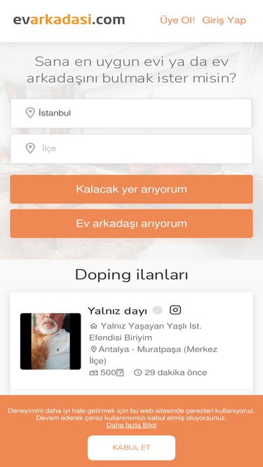 türkiye’nin en büyük ev arkadaşı arama sitesi. kalacak yer mi arıyorsun yoksa evine arkadaş mı?