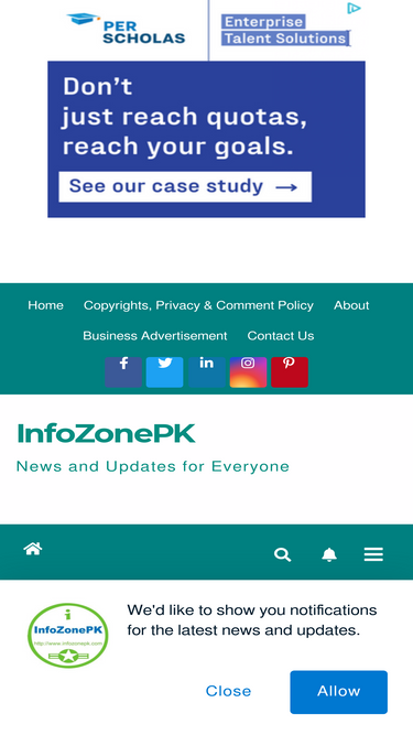 59%InfoZonePK is a web based platform where you can get latest News and Updated from IT, Telecom, Gadget, ISPs, Computer Systems, IT Tips & Tricks, Business, Education, Entertainment, Food, Fashion, Health, Lifestyle, and Sports from Pakistan and all over the world. It coverts details about different startups and the events happening in Pakistan related to startups and ecosystem of Pakistan. It also provides information about the launch of new tech gadgets. You can also get useful IT Tips and technology guidance. So share this News and Updates Blog to all your friends and family to be updated with news of what happening in the world.