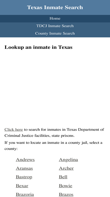 use texas inmate search online to lookup inmates in texas department of criminal justice facilities & county jails. if you cannot find the inmate, contact the jail.