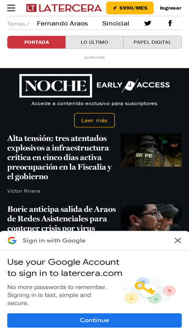 92%Infórmate de lo que ocurre en Chile, Latinoamérica y el mundo. Actualidad, política, deportes, entretención y más.