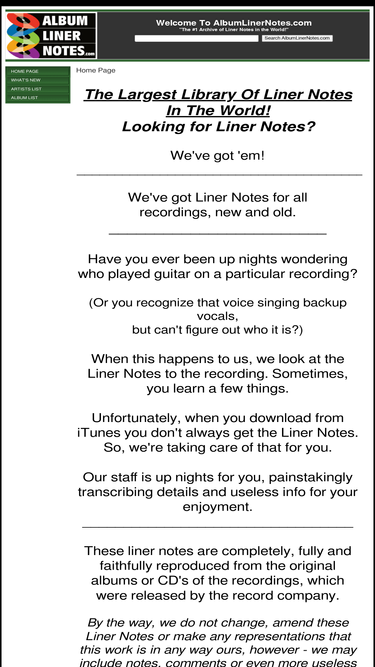 Check out http://albumlinernotes.com! Home Page