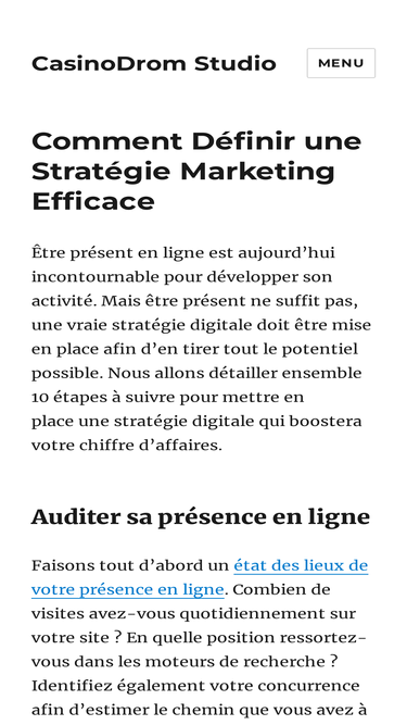 être présent en ligne est aujourd’hui incontournable pour développer son activité. mais être présent ne suffit pas, une vraie stratégie digitale doit être mise en place afin d’en tirer tout le potentiel possible. nous allons détailler ensemble 10 étapes à suivre pour mettre en place une stratégie digitale qui boostera votre chiffre d’affaires. table des matières auditer sa présence en ligne faisons tout d’abord un état des lieux de votre présence en ligne. combien de visites avez-vous quotidiennement sur votre site ? en...lire la suite lire la suite