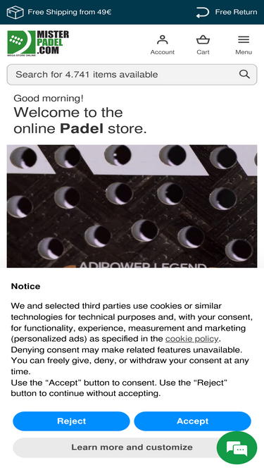 Buy your padel products online in our mega store, you can always count on an easy and free return within 14 days of receiving the package throughout Europe.