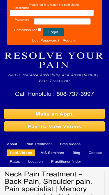 Pain Specialist for neck, back, shoulder pain; sciatica, arthritis joint pain, frozen shoulder, Parkinson's disease, hip pain running, & stroke recovery. Highly beneficial for Alzheimer's care Honolulu, dementia care, and memory care. Memory loss from dementia can be reversed and prevented with AIS therapy in Oahu.