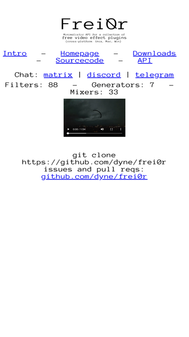 A free software collection of video effect plugins originally developed on GNU/Linux, ported also to Apple/OSX and Microsoft Windows.