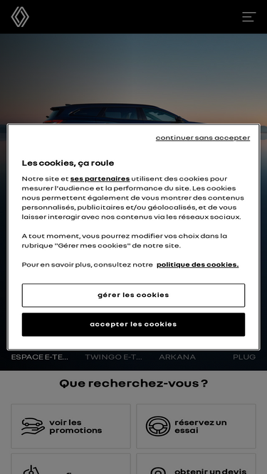 bienvenue sur le site officiel de renault france. découvrez l'ensemble de la gamme : véhicules particuliers (twingo, clio, kadjar...), électriques et utilitaires.