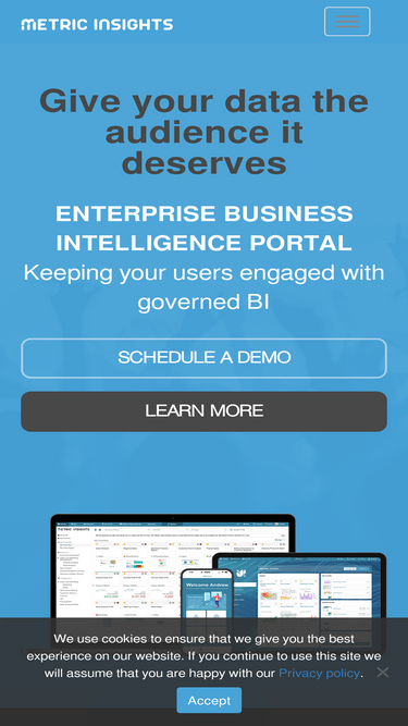 metric insights’ enterprise bi portal is the leading bi governance platform that integrates all your bi tools, reporting, and metrics into a single, consolidated catalog of governed and certified assets. metric insights drives engagement with bi making it simple and practical for users to find, trust, and consume data.