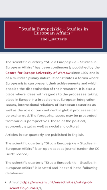 The editors of the “Studia Europejskie – Studies in European Affairs” quarterly are guided by the principles set out by the COPE Committee on Publication Ethics in the COPE Code of Conduct.