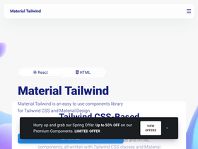 80%material tailwind is a components library that features multiple react & html components, all written with tailwind css classes and material design guidelines.