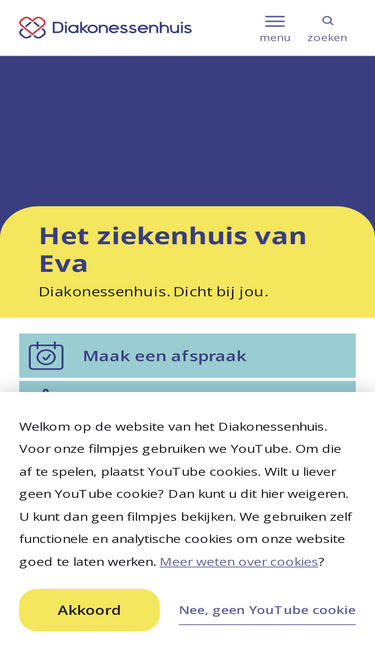 Op onze website maakt u online afspraken bij het Diakonessenhuis. U vindt hier wat u nodig heeft voor uw bezoek aan één van onze ziekenhuis locaties. En alle informatie over specialismen, aandoeningen en behandelingen.