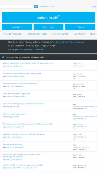 uniboard.ch - das studentenforum. zusammenfassungen, übungs- und prüfungsdiskussionen sowie alles andere rund ums studentsein!