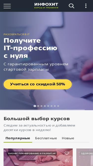 75%Русскоязычный, агрегатор-отзовик всех курсов по маркетингу, бизнесу, инвестированию, дизайну и программированию. Выбирайте куда пойти учиться.