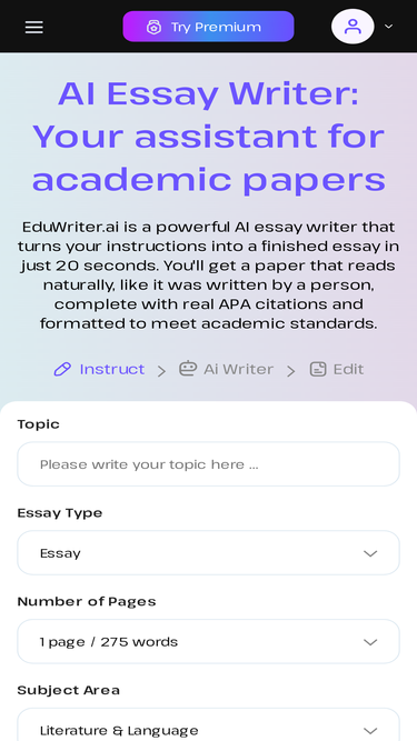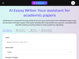 AI Essay Writer by EduWriter: Join 1 million students who are writing undetectable essays, within 30 seconds, with references, for free! Customize your essay by subject area, paper type, length.