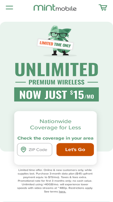 92%Mint Mobile re-imagined the wireless shopping experience and made it easy and online-only. No stores. No salespeople. Just huge direct to you savings on nationwide phone plans.
