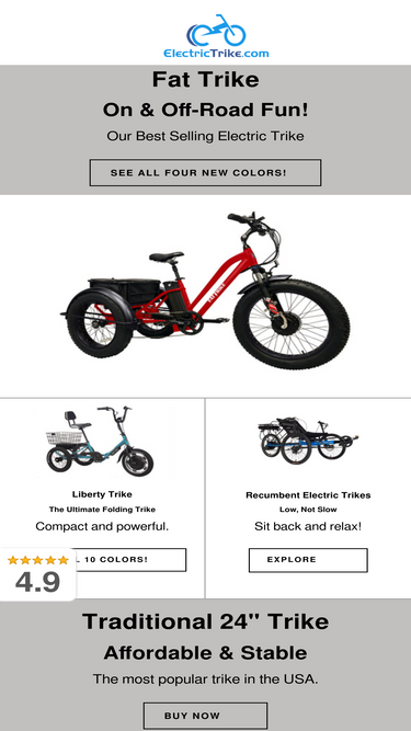 Electric Trikes, Folding Trikes, Adult Electric Tricycles and Recumbent Trikes Shipped Fully Assembled. +1 800-375-0224