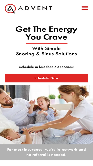 ADVENT delivers effective, office-based relief from nasal congestion, sinus infections, snoring, and sleep apnea. No referral needed. Most insurance accepted.