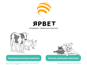 100%в онлайн-гипермаркете yarvet.ru более 7000 товаров по оптовым ценам, необходимых для работы зообизнеса и агропромышленных предприятий. мы продаем ветеринарные препараты, корма, изделия ветеринарного назначения, косметика и гигиена, аксессуары, оборудование. бесплатная доставка, персональные скидки, отсрочка платежа.
