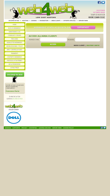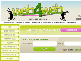 100%web4web è stata acquisita da supporthost. abbiamo migrato tutti i clienti sui nostri server con cpanel per offrire un servizio migliore!