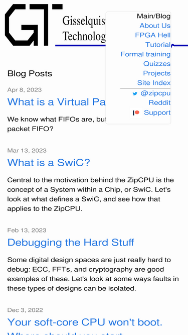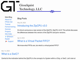 the zipcpu blog, featuring how to discussions of fpga and soft-core cpu design. this site will be focused on verilog solutions, using exclusively opensource ip products for fpga design. particular focus areas include topics often left out of more mainstream fpga design courses such as how to debug an fpga design.