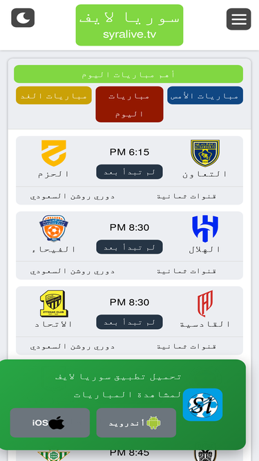 سوريا لايف لبث المباريات اون لاين _ syria live موقع مهتم بتغطية مباريات اليوم اون لاين live syria , يوفر موقع syria live online مشاهدة مباريات اليوم بث مباشر سوريا لايف للجوال.
