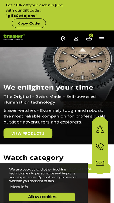 We offer the best night illuminated watches. Made in Switzerland, our self illuminating watches have trigalight technology. Click here to take a look!