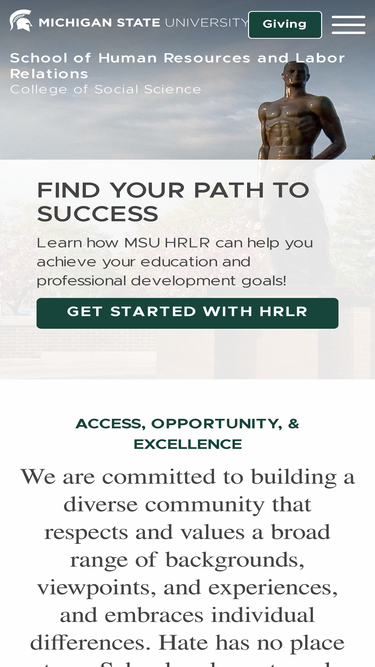 welcome to the school of human resources & labor relations at michigan state university. home to one of the top masters programs in human resources and labor relations, as well as an internationally recognized doctoral program and a thriving undergraduate program in human capital and society. the school also maintains a thriving and diverse professional development program designed to advance skills in leadership, human resources, labor relations, workers' compensation, and family and medical leave for working professionals. in addition, we also have a dedicated labor education programs that provide training, consulting services, and research to help build effective unions and workplaces. no matter where you are in your educational journey, you can always join our #lifelongnetwork.