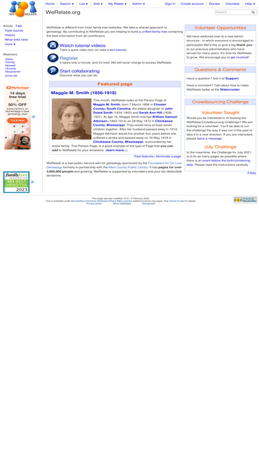 在 1月 2026,werelate.org 被評為與 wikitree.com 相似度第四高的網站,familysearch.org 則位居第五。