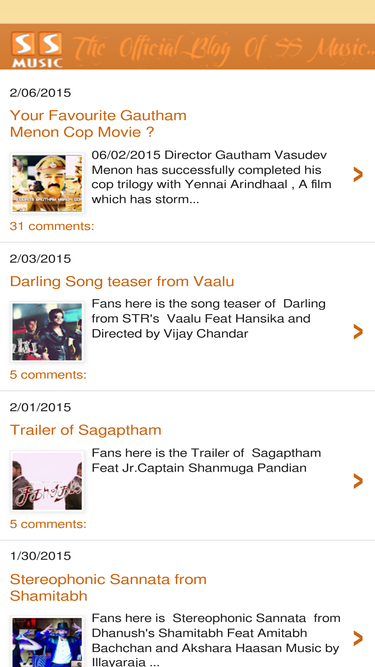 ss music's official blog about tamil cinema featuring the latest gossips, news and exclusive posts.