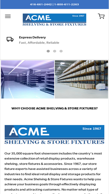 Acme Shelving & Store Fixtures is a proudly Canadian owned & operated retail supply store. For more than 45 years, we have been one of North America’s leading store fixture suppliers, based out of our 35,000 square foot showroom. Acme Shelving & Store Fixtures has the best selection of used retail fixtures in Toronto.