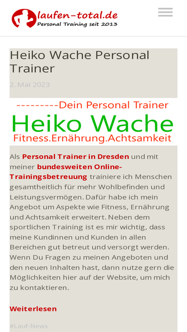 Heiko Wache Online-Lauftraining bundesweit und Personal Training in Dresden. Mit Motivation und Erfahrung zum Erfolg. Laufen total.