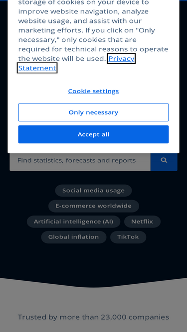 82%Find statistics, consumer survey results and industry studies from over 22,500 sources on over 60,000 topics on the internet's leading statistics database