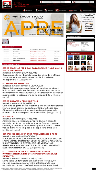85%Fotoportale è uno spazio virtuale dedicato ai professionisti del mondo della fotografia professionale. Fotoportale fornisce gratuitamente visibilità agli operatori consentendo loro di pubblicare un profilo, caricare foto e utilizzare tutti gli strumenti di promozione previsti. Fotoportale ha anche un'area divulgativa curata dalla redazione dove si raccolgono gli eventi, le mostre i concorsi e i casting in modo da tenere i visitatori sempre aggiornati sulle ultime novità.