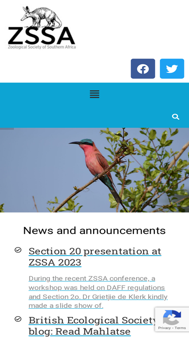 The Zoological Society of Southern Africa was originally formed with the vision of promoting zoology (through conferences and a scientific journal) across all sub disciplines of southern Africa.