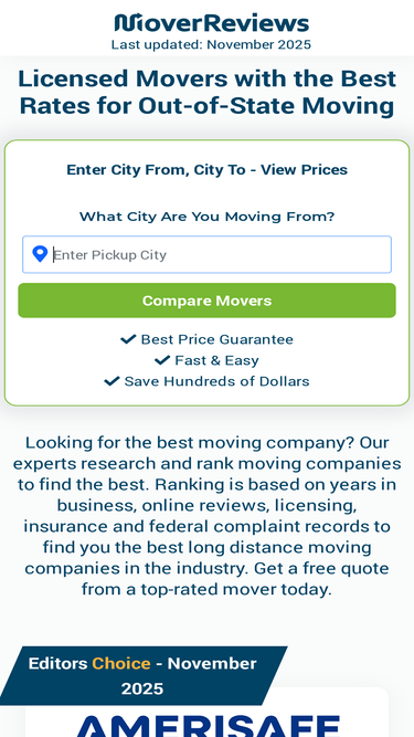 根据 Similarweb 月度访问量数据,10bestmovingcompanies.com 在 十月 2025 的最大竞争对手是 getmovers.com,其访问量为 106.1K。10bestmovingcompanies.com相似度排名第二的网站是 americanvanlines.com,在 十月 2025 的访问量为 36.6K,排名第三的是 movingfeedback.com,其访问量为 18.9K。