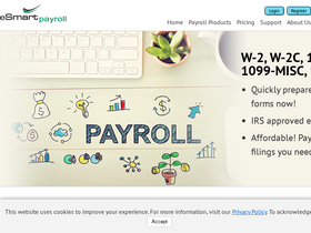 esmart payroll tax software offers online e-filing for irs forms w2 w2-c 940 941 1099 misc 1099-c de9c and corrections. esmart payroll is irs authorized.