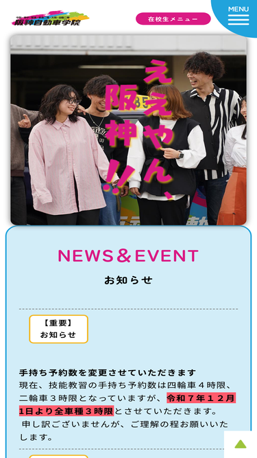 中型・準中型・普通・二輪・大特・普二種などの運転免許証取得に幅広く対応。伊丹・宝塚・西宮・川西・尼崎・兵庫県東部のみなさん、阪神自動車学院でお待ちしております!