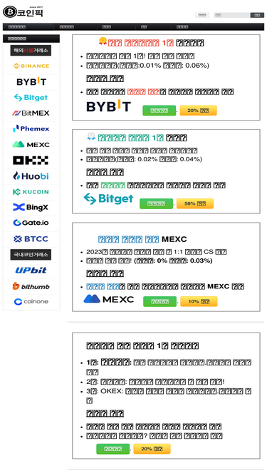 100%코인 선물거래소 1위 바이비트 선물거래소 업계 1위! 가장 많은 거래량 선물수수료(지정가:0.01% 시장가: 0.06%) 사이트 추천 높은 거래량과 검증된 업체가 필요하면 바이비트 추천 회원가입. 20% 할인 한국유저 선호도 1위 비트겟 가장 많...