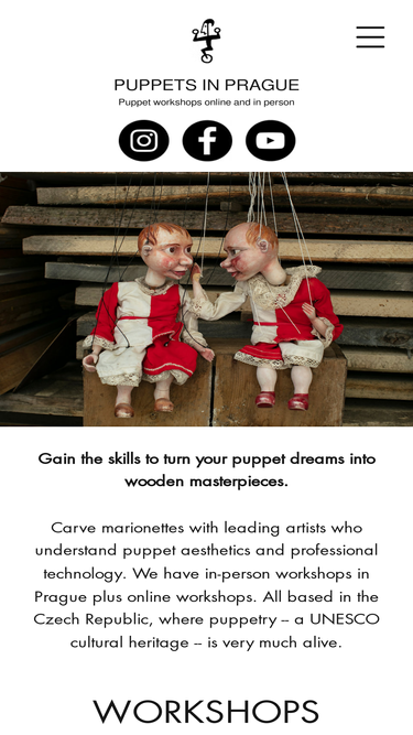 70%Puppets in Prague offers in-person and online puppet building workshops where students learn to make wooden carved marionettes from Czech puppet experts.