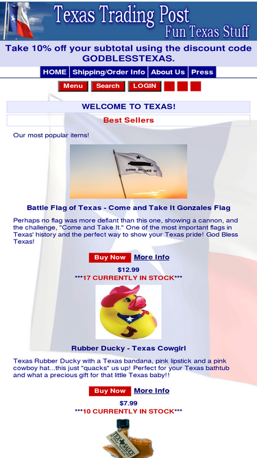 Looking for the perfect Texas gift? Explore our selection of Texas apparel, décor, flags, mugs, and souvenirs. Fast shipping from the heart of Texas and friendly hometown service make Texas Trading Post your go-to shop for every Texan on your list.